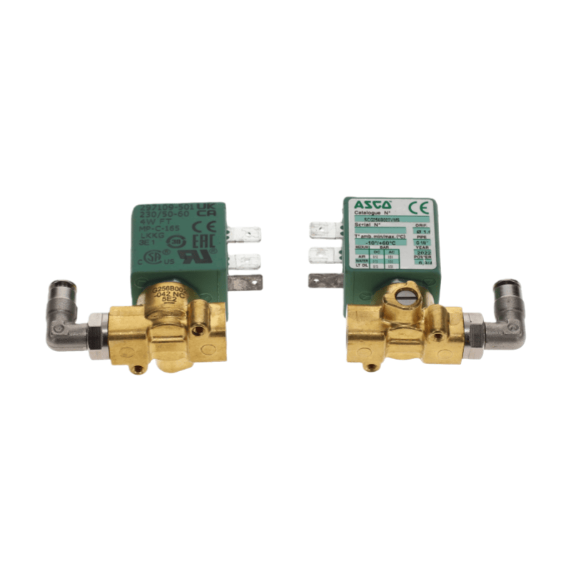 Segurtasun arintzeko solenoide balbula: gehienbat bi posizioko bi norabideko balbula normalean irekita. Aire-konpresorea deskargatzen edo itzaltzen denean, itzali egiten da, eta olio-gas deposituko gasa sarrerako iragazkira askatzen du, sistemaren presioa segurtasun-tarte batera jaisten dela ziurtatzeko.