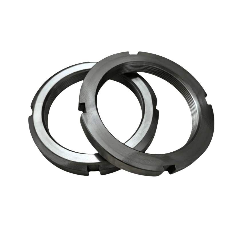 Sloted Locking Intxaur (irekidura PINarekin): Intxaurrak torloju zuloarekin egokitzen den zirrikitua du, eta irekiera pin bat sartzen da blokeatzeko. Anti-solte efektua fidagarria da eta abiadura handiko biraketa edo bibrazio larria duten osagaietarako erabiltzen da (adibidez, biradera amaitzen da).